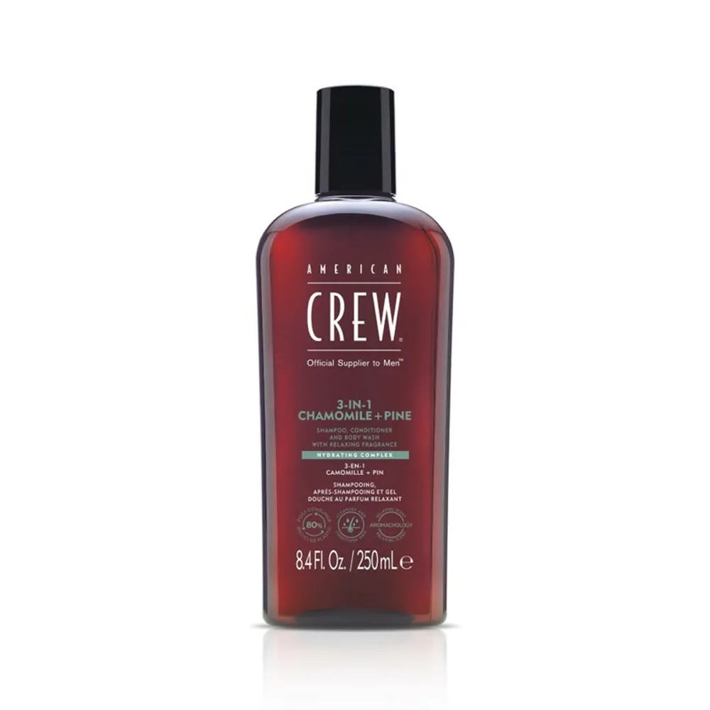 All-in-one shampoo, hoitoaine ja suihkugeeli, jonka koostumuksessa on rentouttava kamomillan ja männyn tuoksu. Puhdistaa ja kosteuttaa hiuksia ja vartaloa tarjoten samalla täyteläisen, ylellisen vaahdon, joka puhdistaa hellävaraisesti, poistaa epämiellyttäviä hajuja ja tuotejäämiä. Tukee ja palauttaa ihon luonnollisen kosteustasapainon. Pakkaus on valmistettu 80 % kierrätetystä muovista. Levitä kosteisiin hiuksiin ja vartaloon. Hiero hellästi. Huuhtele huolellisesti.