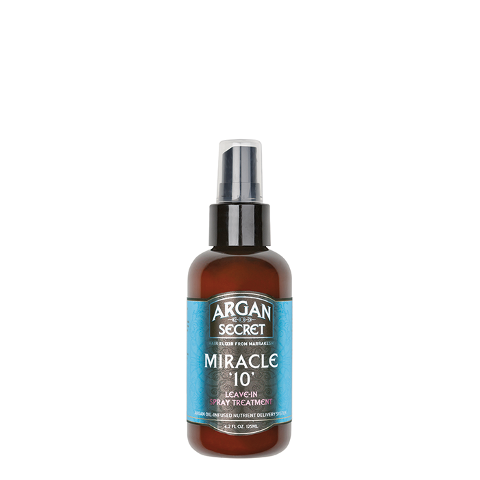 Argan Miracle 10 on hiuksiin jätettävä, johon on lisätty 10 ominaisuutta. Se on kosteuspommi, vahvistava, kiiltoa antava, selvittävä ja sisältää sekä UV-, väri- että lämpösuojan. Lisäksi siinä on myös pörröisyyttä estävä kompleksi, joka vähentää haaroittuneita latvoja ja kuivuu nopeasti.