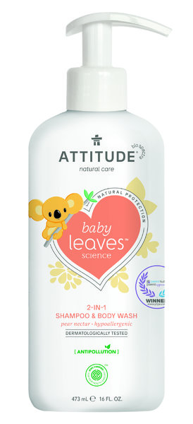 Attituden päärynäntuoksuinen shampoo ja vartalonpesugeeli huolehtivat vauvan herkästä ihosta! Hypoallergeeninen ja huoleton kasvipohjainen koostumus. Mustikanlehtiuute hoitaa ja rauhoittaa pikkulapsen herkkää ja ärsyttäville aineille altista ihoa. Tuote ei sisällä synteettisiä hajusteita, ja se on kevyesti hajustettu päärynämehun aromilla.