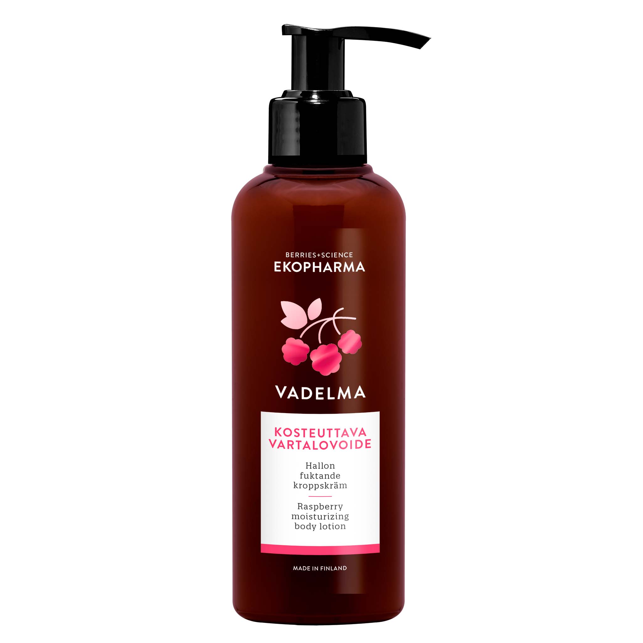 Kevyt ja tehokkaasti kosteuttava vartalovoide sisältää antioksidanttista ja vitamiinirikasta vadelmaa sekä ihoa luonnollisesti kosteuttavaa koivusokeria ja natrium PCA:ta. Jojobaöljy ja vadelman siemenöljy hoitavat ja pehmittävät vartalon ihoa palauttaen ihon sileän kimmoisuuden. Ihoa tehokkaasti kosteuttava vartalovoide on kevyen raikkaan tuntuinen ja imeytyy ihoon hyvin.