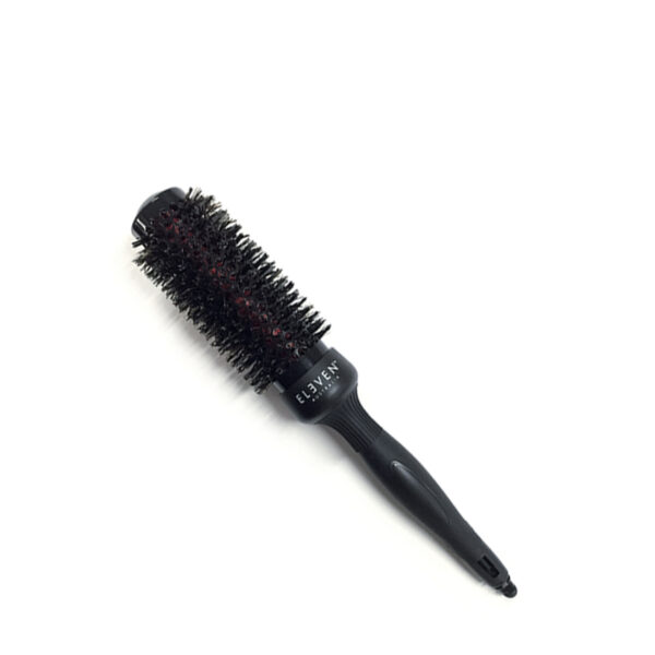 ELEVEN Australia MEDIUM ROUND BRUSH on 33mm pyöröharja, joka vähentää föönaukseen kuluvaa aikaa ja tekee siitä vaivatonta. Harjassa on antibakteerinen ja antistaattinen pinnoite, jonka ansioista se pysyy puhtaana pidempään ja tekee hiuksista kauniin kiiltävät. Pyöröharjan harjakset ovat 60% villisian ja 40% nylonharjaksia. Silikoninen pinnoite kädensijassa tekee harjasta helppokäyttöisen. MEDIUM ROUND BRUSH on täydellinen valinta ilmavien laineiden ja kiharoiden föönaukseen.
