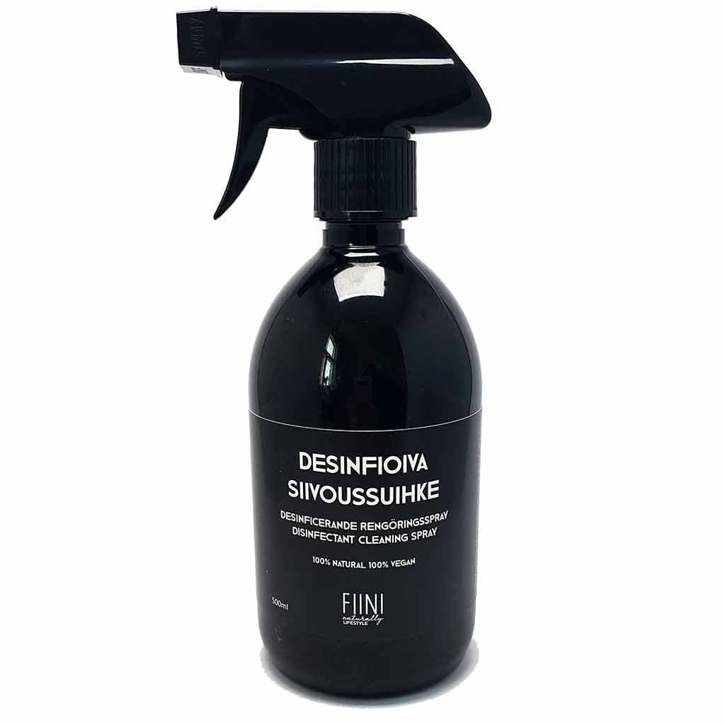 Käyttövalmis desinfiointi siivoussuihke kodin pinnoille. Viimeistelee kodin puhdistuksen tehokkaasti pinnoilla. Sisältää alkoholia 70%, joten tehoaa bakteereihin ja viruksiin.