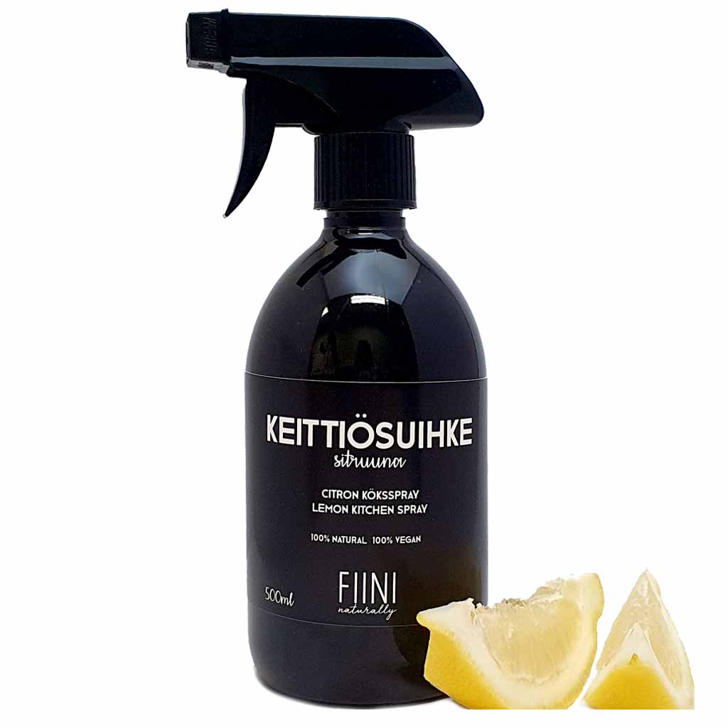 Biohajoava ja 100% luonnollinen sekä vegaaninen keittiösuihke keittiön pintojen puhdistukseen. Keittiösuihke on tehokas lian irrottaja ja tuoksuu raikkaalle sitruunalle.