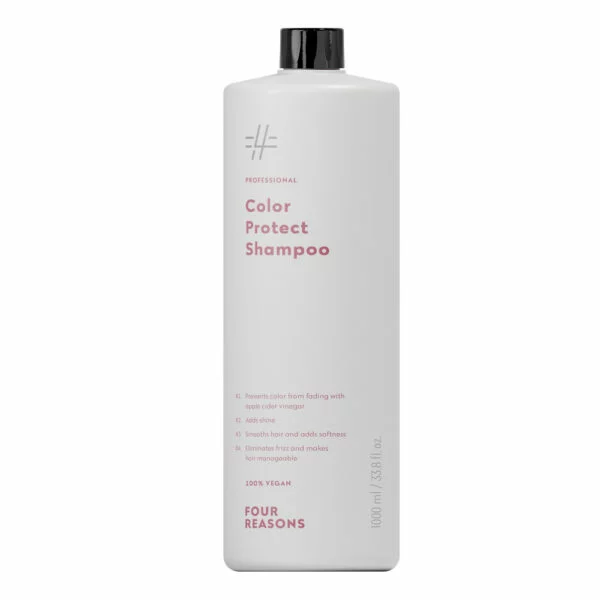 Four Reasons Professional Color Protect -linja on työvälineesi värjätyille, helposti haalistuville, elottomille ja kiillottomille hiuksille. Tuotteet auttavat pitämään kaikki hiusvärit eloisana pidempään. Sopii esimerkiksi vaikeasti pysyville sävytteille tai helposti haalistuville kirkkaille väreille.