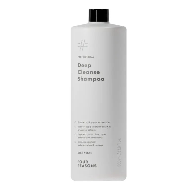 Four Reasons Professional Deep Cleanse shampoo on syväpuhdistava shampoo, joka poistaa muotoilutuotejäämiä sekä epäpuhtauksia hiuksista.