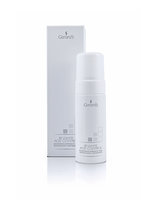 Gerard’s RE-WHITE Micropeeling -puhdistustuote. Erityinen moussemainen puhdistustuote voimakkaalla ihoa supistavalla, rauhoittavalla ja kosteuttavalla vaikutuksella. Tuote kuorii hellästi ihon, vähentäen ihovirheitä. Lisäksi se tasapainottaa kosteustasapainoa ja parantaa ihon mikroverenkiertoa sekä väriä. Käytetään meikinpoiston jälkeen.