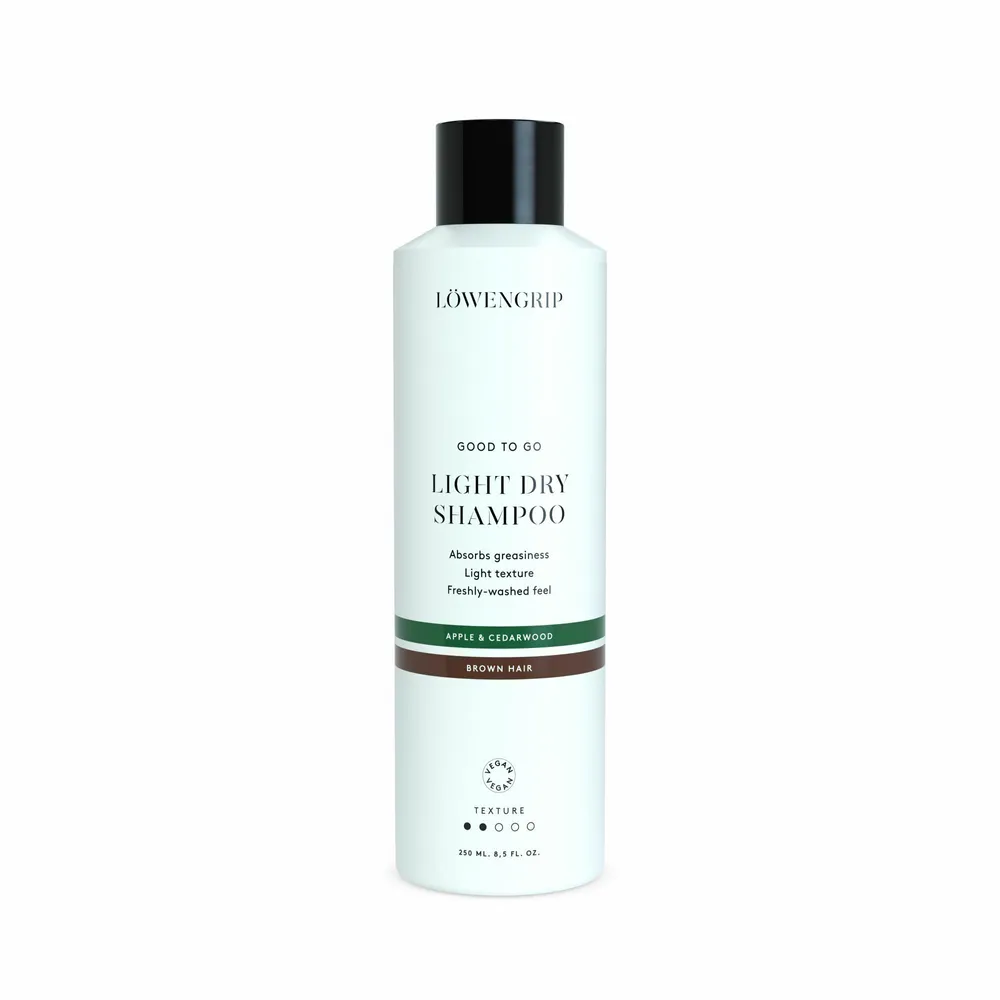 Good To Go Light Dry Shampoo Brown on värillinen, hoitava kuivashampoo, joka poistaa ylimääräistä rasvaa ja tekee hiuksista vastapestyn tuntuiset, ilmavat ja silkinsileät tekemättä hiuksia raskaiksi. Sisältää B5-vitamiinia ja kamomillauutetta, joka rauhoittaa ja hoitaa hiuspohjaa. Sopii vaaleanruskeista erittäin tummanruskeille hiuksille. Omenan ja seetripuun tuoksu.