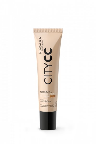Innovaatio: Luonnollisella SPF15-voiteella on samettinen koostumus ja peitto, mikä antaa iholle luonnollisen, tasaisen sävyn ja hehkun. Sävy: keskitumma beige. CITY CC parantaa huomattavasti epätasaista ihon sävyä – vaaleaa, punoitusta, kellastumista ja pigmenttiläiskiä. Suojaa ihoa tehokkaasti UVA/UVB-säteilyltä ja kaupunkiympäristön haitallisilta vaikutuksilta, rauhoittaa ihoärsytystä. Koostumuksen sisältämän hyalronihapon virkistävän ominaisuuksista johtuen iho on kosteutettu koko päivän ajan.