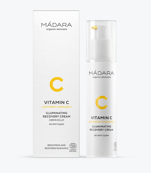 C-vitamiini on tehokas antioksidantti, jota käytetään ihonhoidossa ja dermatologiassa palauttamaan heleyttä, parantamaan ihon sävyä ja saavuttamaan terveen hehkun. Koostumus sisältää stabiloitua C-vitamiinimuotoa, joka kestää erittäin hapettumista, tämä säteilevä, palauttava kosteusvoide elvyttää välittömästi sameaa ja väsynyttä ihoa ja tasoittaa ihon sävyä. Auttaa estämään hyperpigmentaatiota ja tummia läiskiä. Hyaluronihappo kosteuttaa tehokkaasti, samalla leväuute saa ihon hehkumaan, siitä tulee pehmeämpi ja sileämpi, nuorekkaan raikas ja kauniisti hehkuva. Sopii kaikille ihotyypeille.