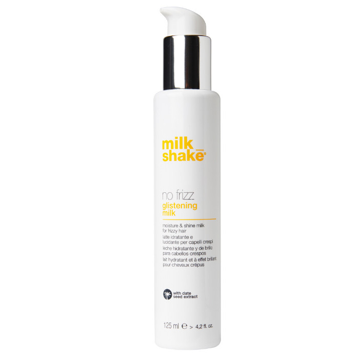 Milk_Shake No Frizz Glistening Milk 125 ml. Erityisesti suunniteltu suoristamaan hienoja kiharoita samalla kun kampaa ja suojaa hiuksia kuumuudelta föönauksen aikana. Innovatiivisen koostumuksen ansiosta, jossa yhdistyvät taatelisiemenuute ja Abessinian öljy, hiuksista tulee erittäin pehmeät, kiiltävät ja helposti kammattavat. Abessinian öljy antaa kiiltoa ja pehmeyttä hiuksille. Se on 100 % luonnollinen kasviöljy, joka sisältää runsaasti rasvahappoja. Tämä upea öljy vahvistaa ja paksuntaa hiuksia, ravitsee hiusten vaurioituneita alueita. Ja koostumuksen aurinkosuodattimet suojaavat hiuksia haitalliselta auringonvalolta. Korkean vitamiini- ja ravintoainepitoisuutensa ansiosta maidon sisältämä taateliuute elvyttää täydellisesti ohuet, heikot hiukset, antaa niille volyymia, kiiltoa ja elinvoimaa. Koostumuksen antioksidantit virkistävät hiuksia ja auttavat säilyttämään hiusten värin. Tällä maidolla hiukset päällystetään suojaavalla kerroksella, joka vähentää pörröisyyttä ja tekee niistä sileämpiä. Milk Milk Shake No Frizz Glistening Milk suojaa hiuksia lämmön haitallisilta vaikutuksilta, antaa loistavan kiillon, auttaa hallitsemaan hiuksia ja vahvistaa hiuksia juurista alkaen.