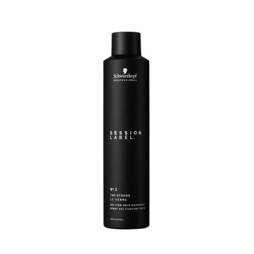 SESSION LABEL The Strong -hiuskiinne antaa voimakasta kiinnitystä ja maksimaalista tukea. Erittäin hienojakoisen suihkeen ansiosta hiukset on helppo työstää. Vegaaninen* hiustuote.
