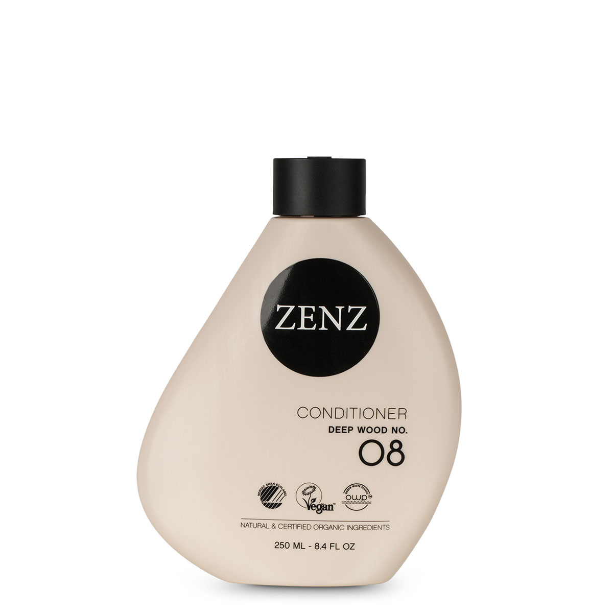 Deep Wood Conditioner no. 08 on ympäristömerkitty hoitoaine päivittäiseen käyttöön. Se sisältää kylmäpuristettua luomuavokadoöljyä ja luomu aloe veraa. Hiukset ja hiuspohja vahvistuvat ja niistä tulee kiiltävämmät. Sopii stressiperäiselle hiustenlähdölle ja ohuille hiuksille, herkälle hiuspohjalle, hilseen, ihottuman ja kutinan hoitoon. Tuoksuu santelipuulta, setriltä, patsulilta ja mirhalta.